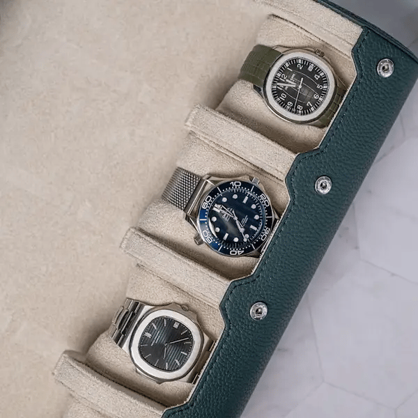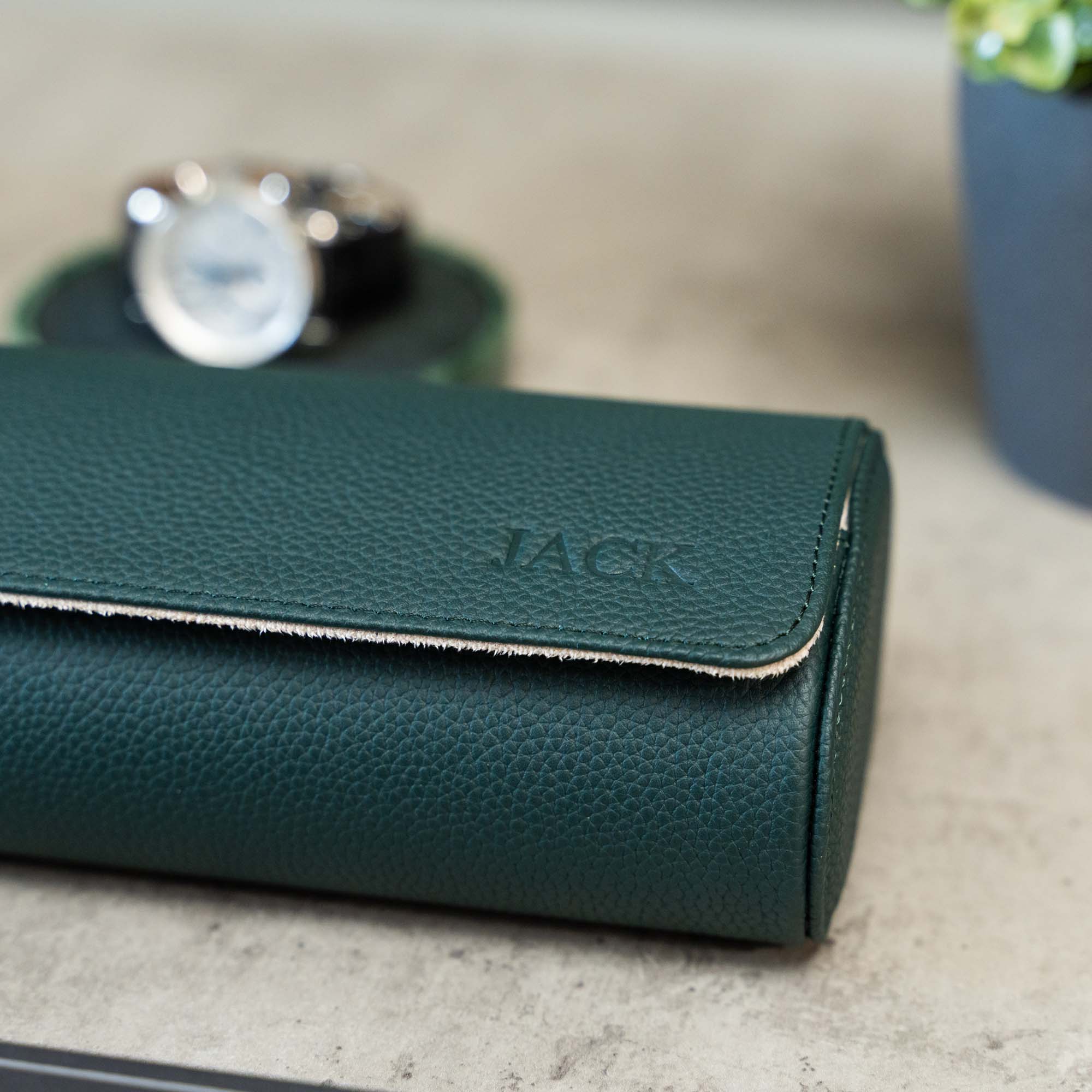Personalized Travel Watch Roll Extra Large - Dark Green Litchi