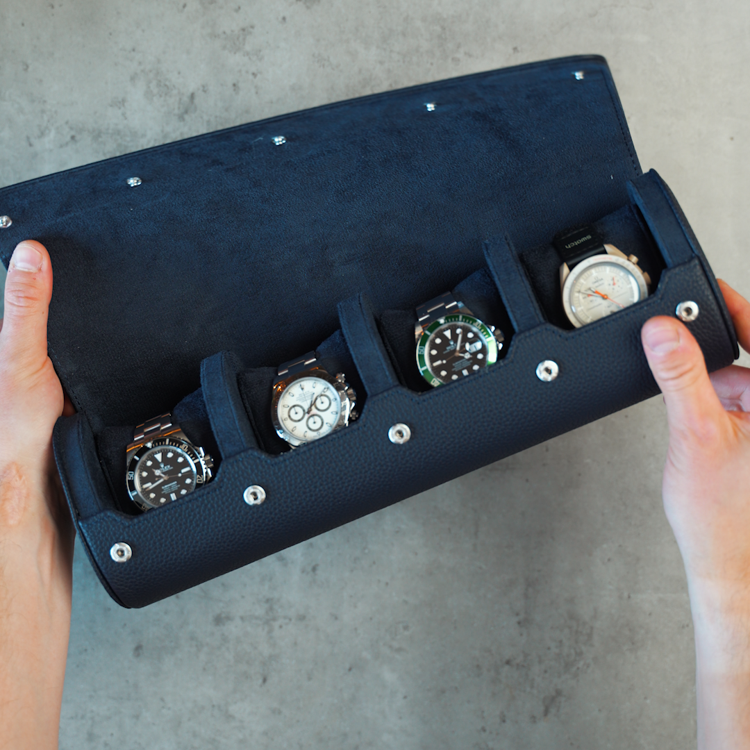 Personalized Travel Watch Roll Extra Large - Navy Blue