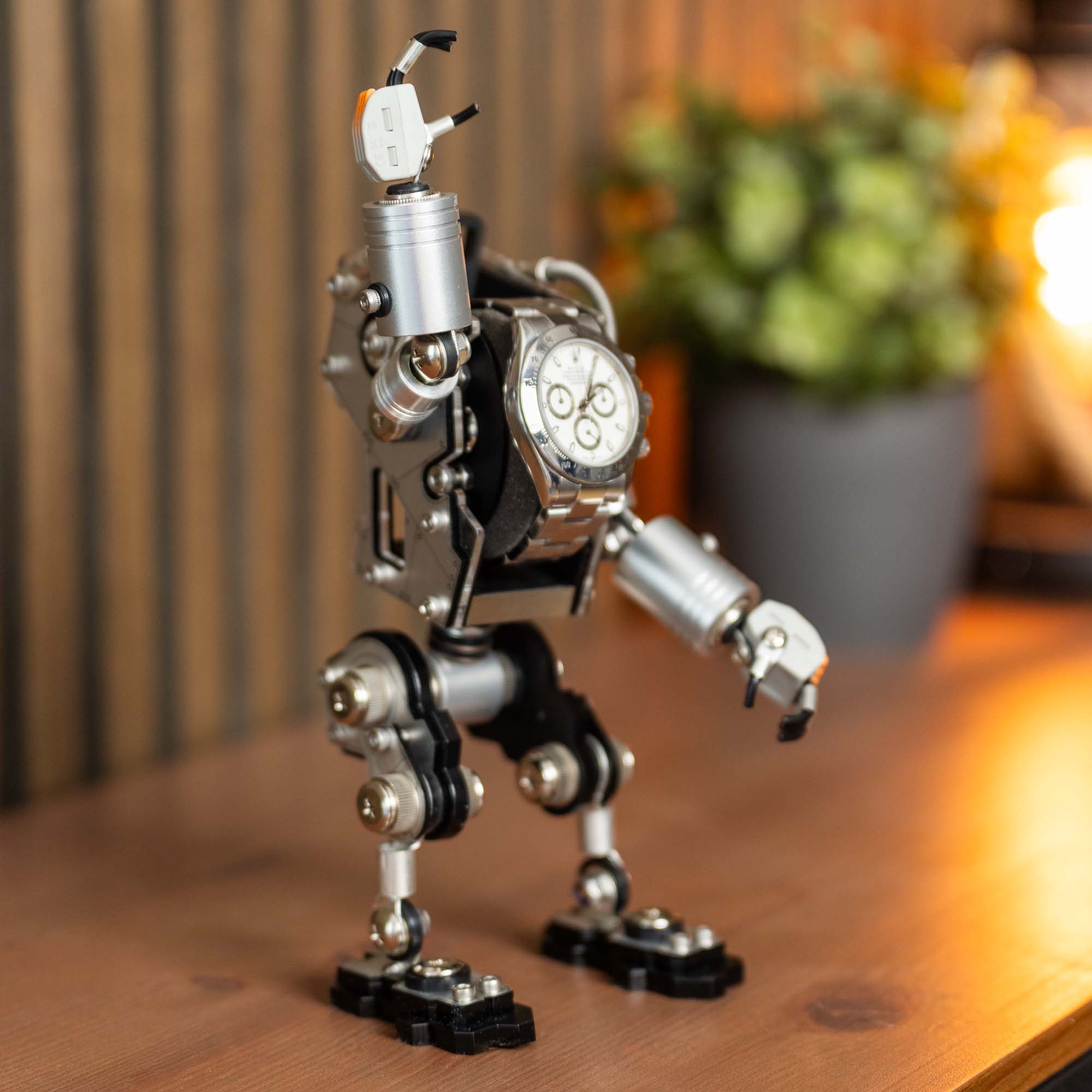 Meet our Robotoy. The Robotoy is the ultimate watch stand for your precious watch. The arms, hands and legs of the robot can be changed to a position of your choosing and it will give a different character to the Robotoy.
