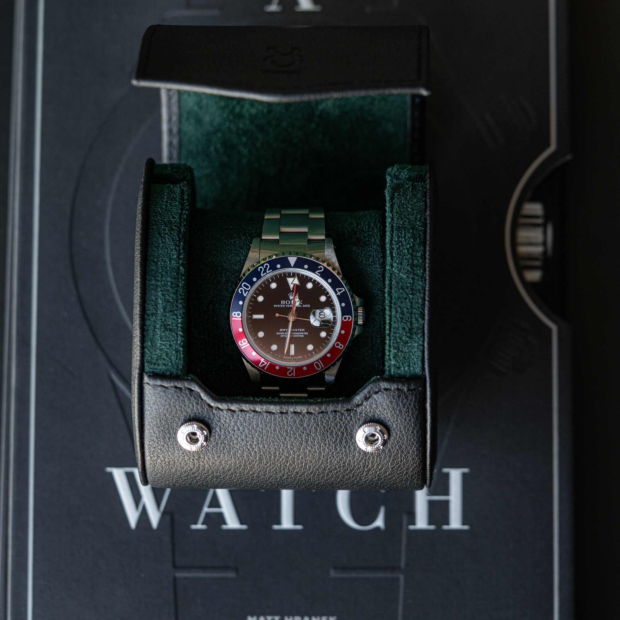 Two Slot Watch Roll - All Black Saffiano