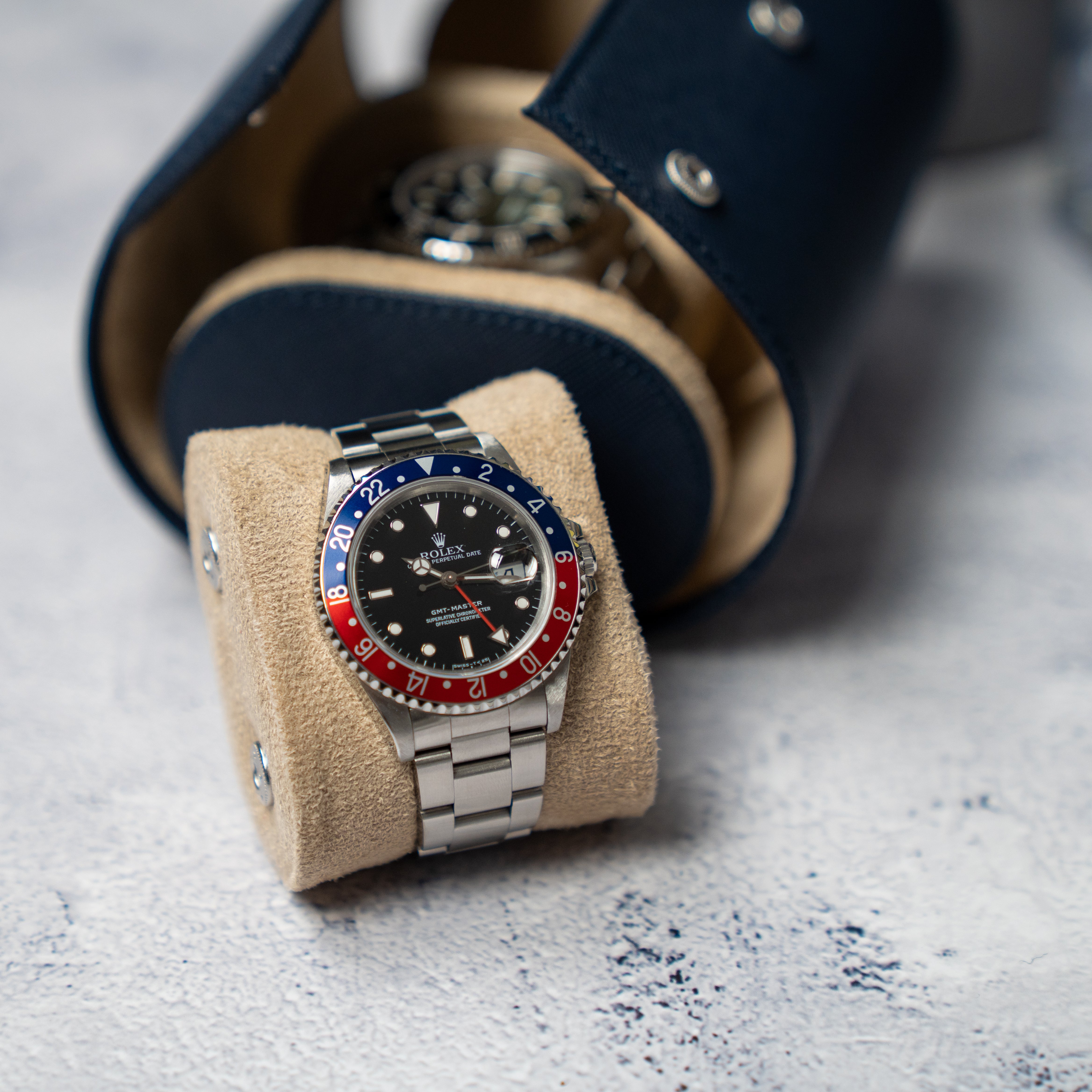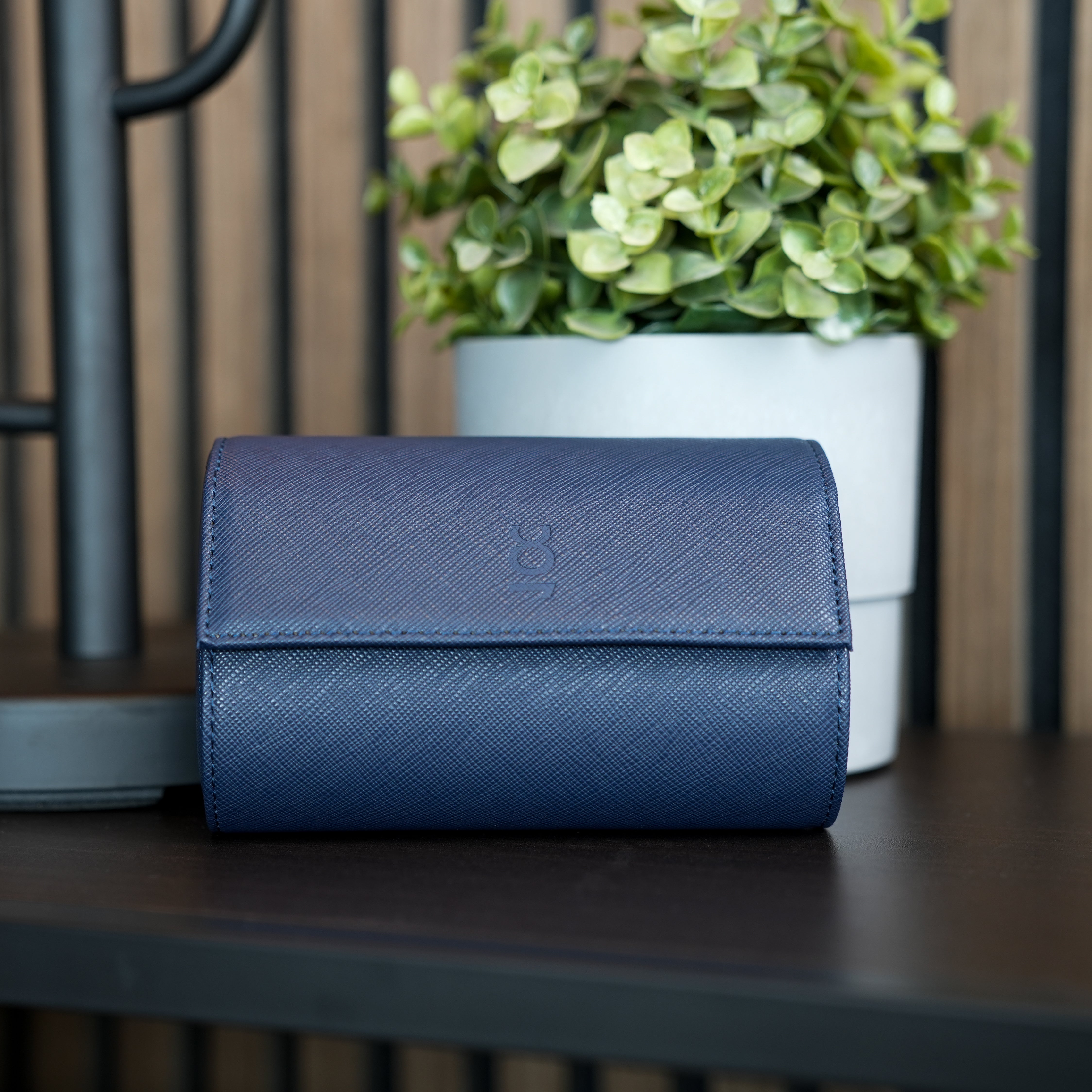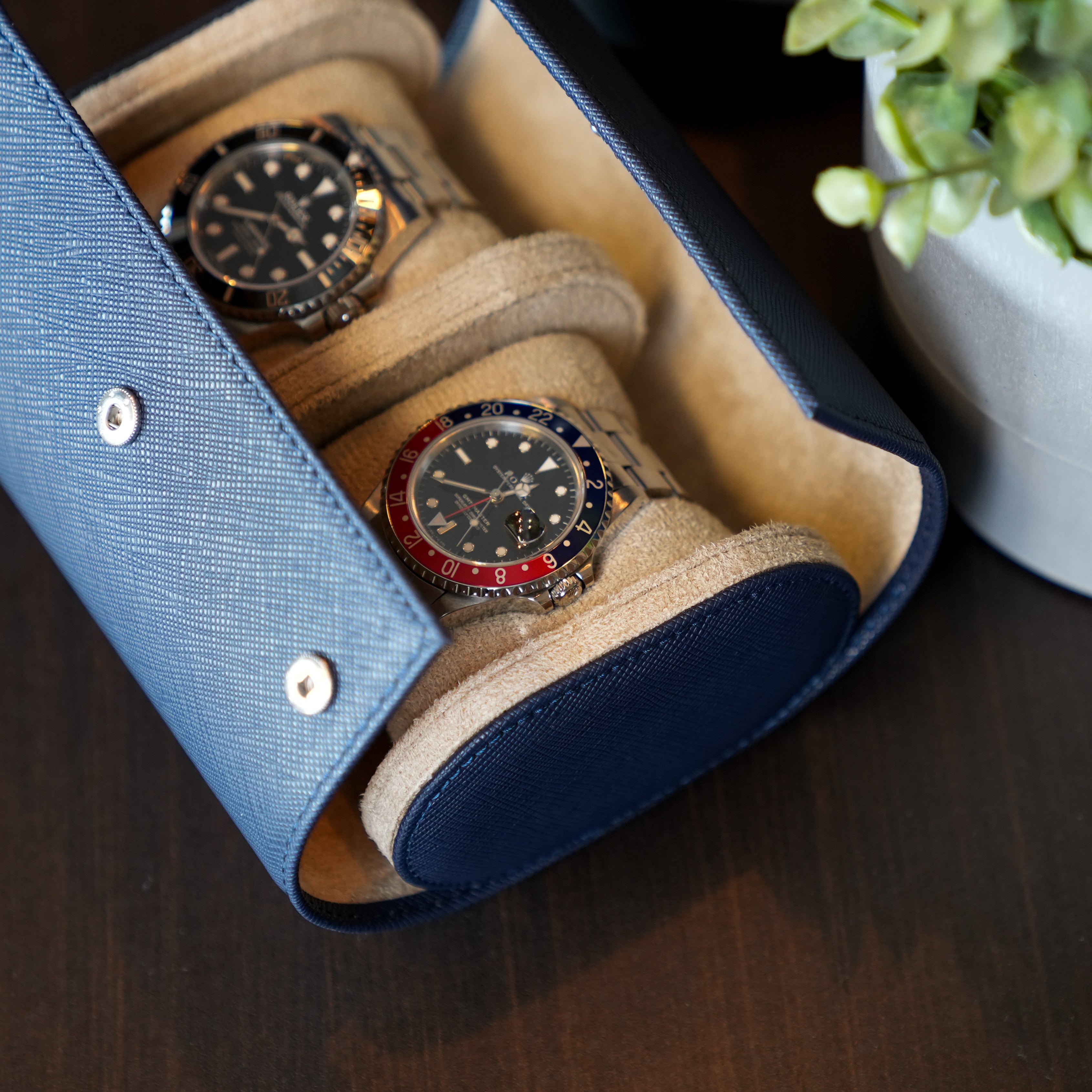Two Slot Watch Roll - Navy Blue Saffiano