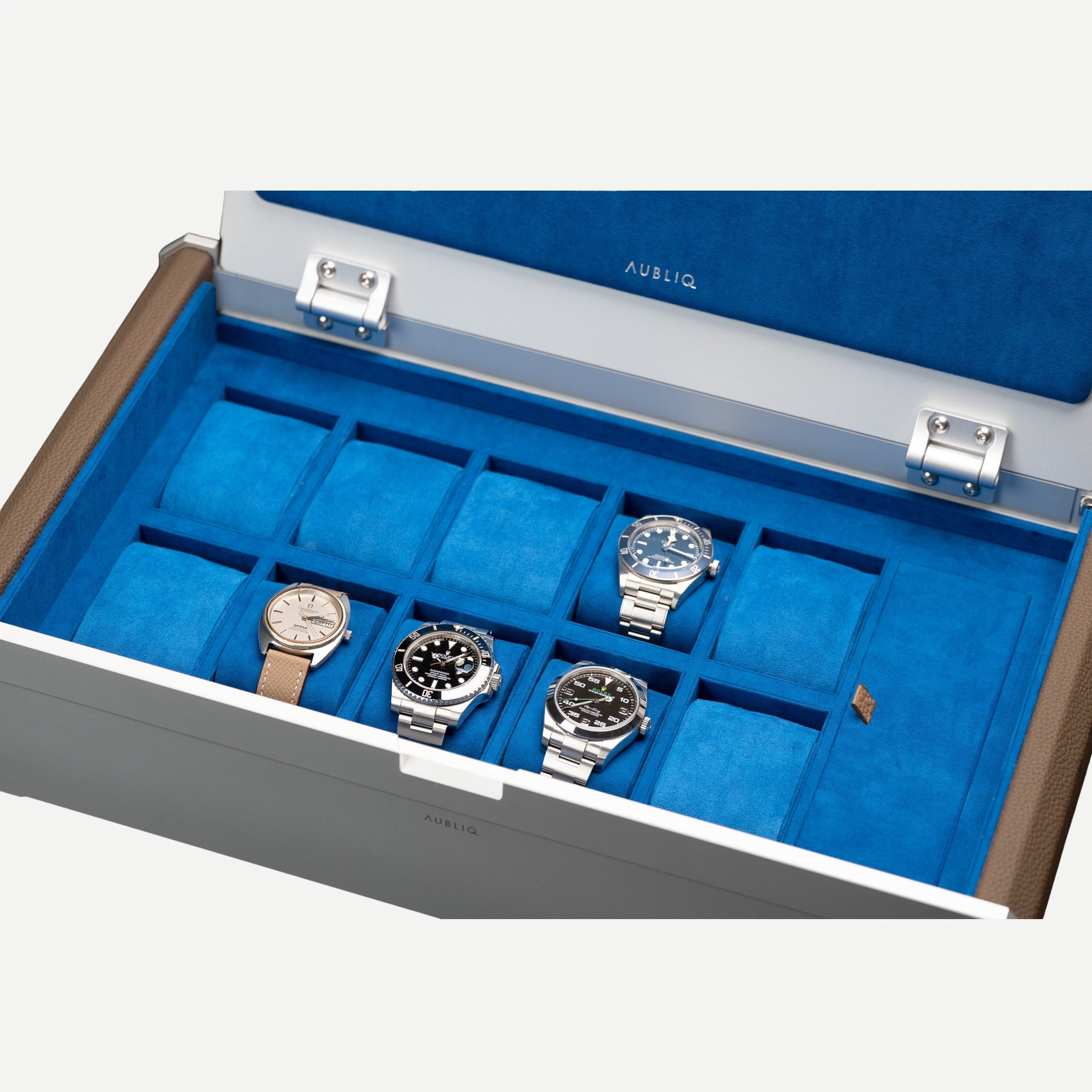 AUBLIQ Watch Box Silver 10 Slot + Strap Slot