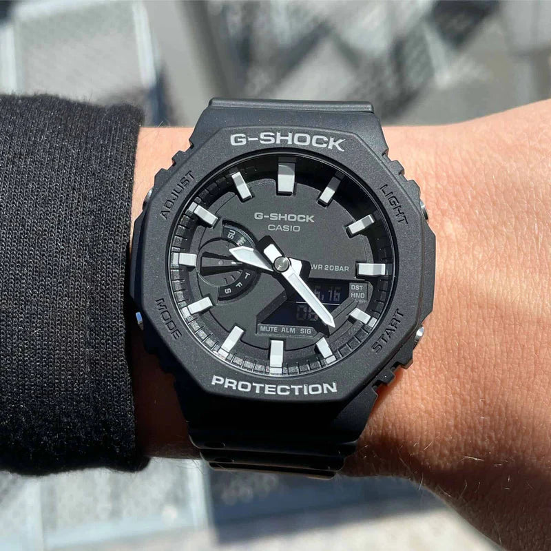 Die Casio GA-2100-1AER, auch bekannt als „CasiOak“, war eine der beliebtesten Uhren des Jahres 2019, und es ist leicht zu erkennen, warum.. Mit der Casio GA-2100-1AER erhalten Sie eine schöne Herrenuhr mit einem Armband aus Leder eine leichte Stahlsorte, die die Uhr super angenehm zu tragen macht. Die Uhr hat sowohl eine analoge als auch eine digitale Anzeige.