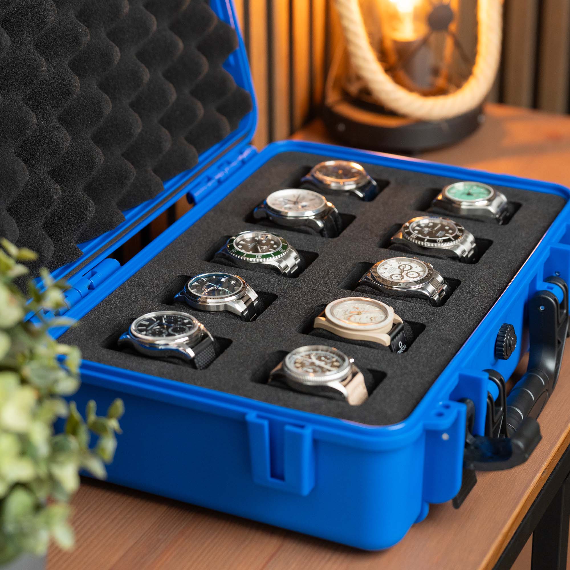 Organize and protect up to 10 watches! This Olive Green watch box is presented in a hard case to give the best possible protection and security for your prized possessions. Perfect for home storage and travel on the go. This watch box is for any watch enthusiast or collector. The interior features high-quality foam, precisely cut to ensure a snug fit for each watch.