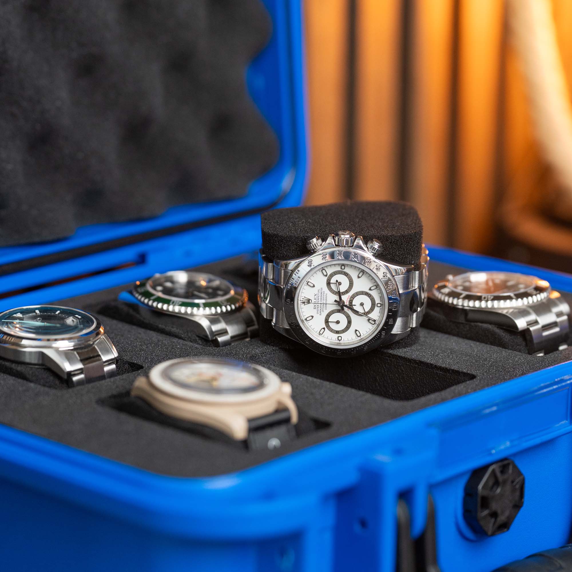 Organize and protect up to 6 watches! This all black watch box is presented in a hard case to give the best possible protection and security for your prized possessions. Perfect for home storage and travel on the go. This watch box is for any watch enthusiast or collector. The interior features high-quality foam, precisely cut to ensure a snug fit for each watch.