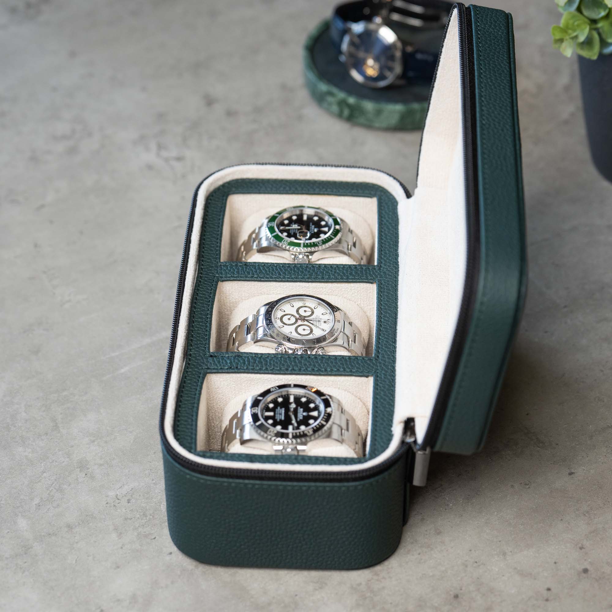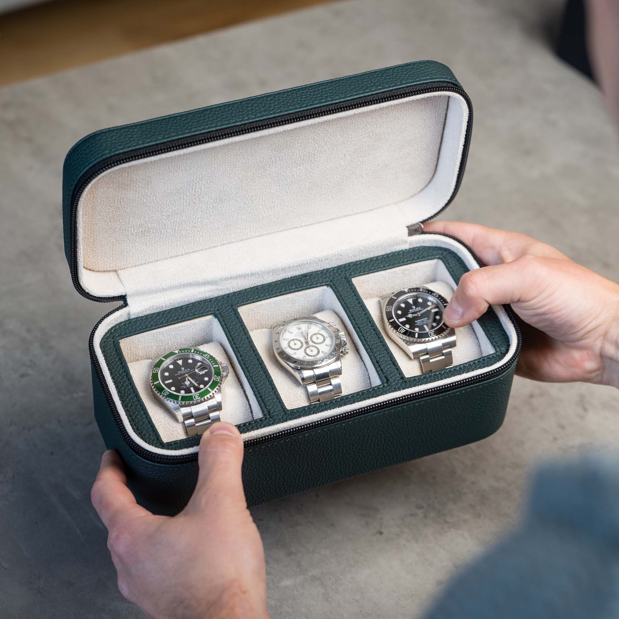 Square Watch Box 3 Slot - dunkelgrüner Litchi