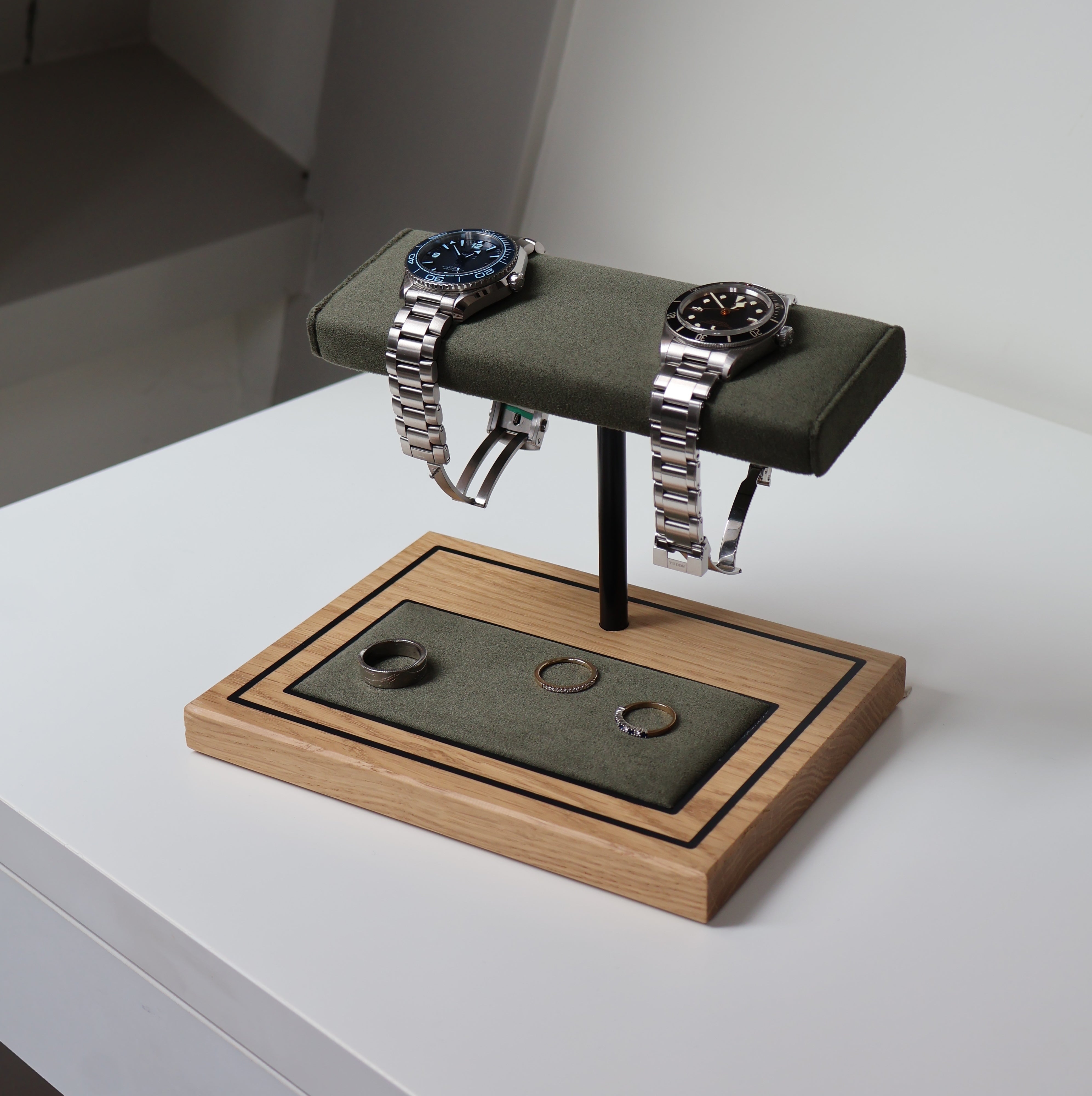 - Bewahren Sie bis zu 4 Uhren gleichzeitig auf (Uhren bis zu einer Gehäusegröße von 42 mm – 2 Uhren auf jeder Seite der Halterung).
