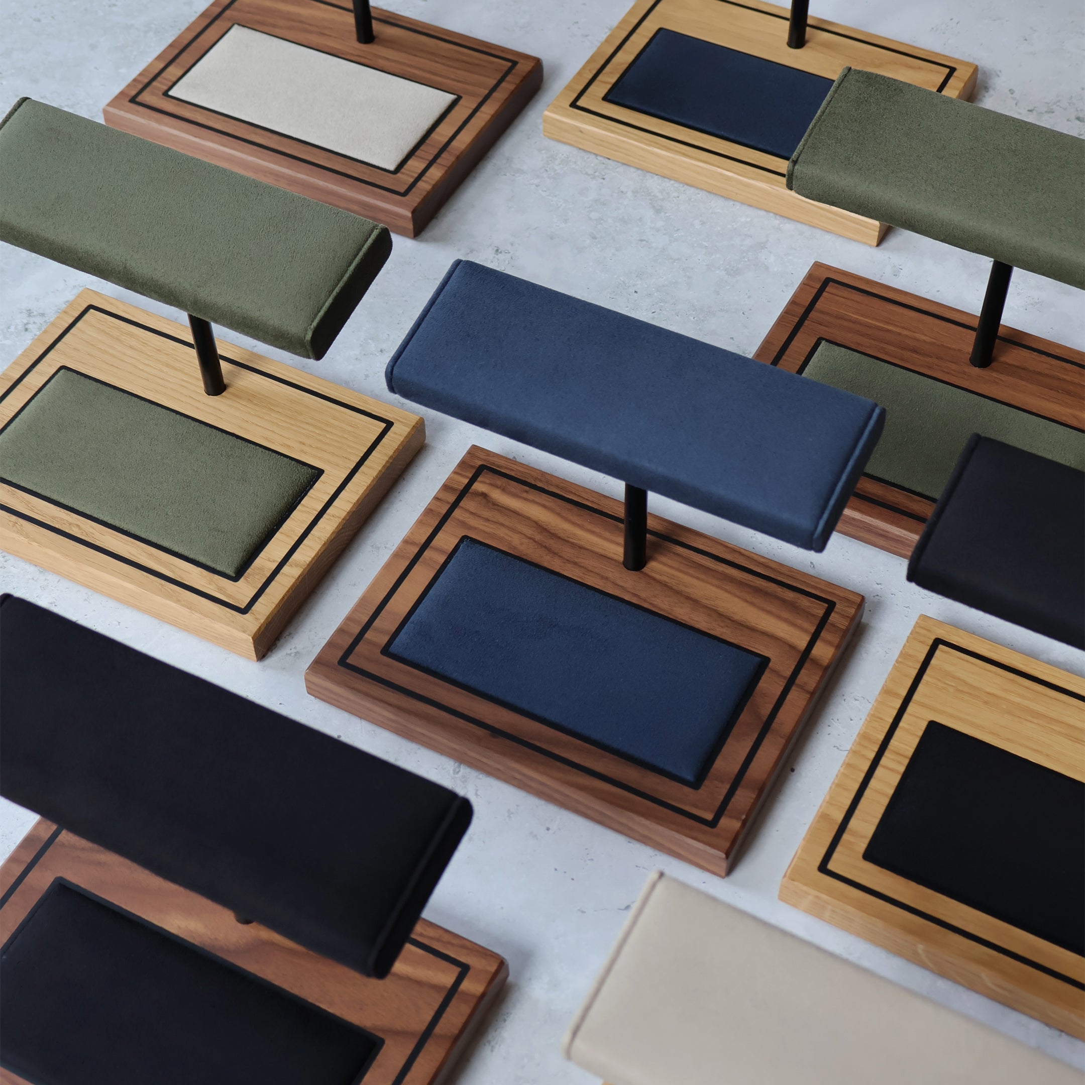 Der Uhrenständer Foxton von Realm Design ist elegant und zeitlos gestaltet. Er bietet schnellen und leicht zugänglichen Stauraum und verfügt zusätzlich über einen gepolsterten unteren Bereich für losen Schmuck wie Ringe, Armbänder und Manschettenknöpfe; perfekt für den täglichen Gebrauch.