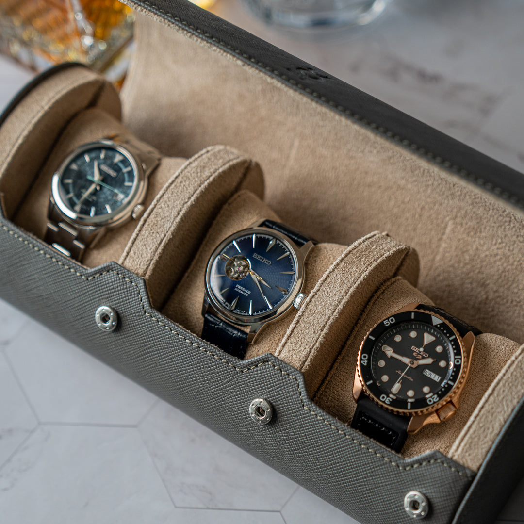 Große Uhrenrolle für die Reise - Grey Saffiano