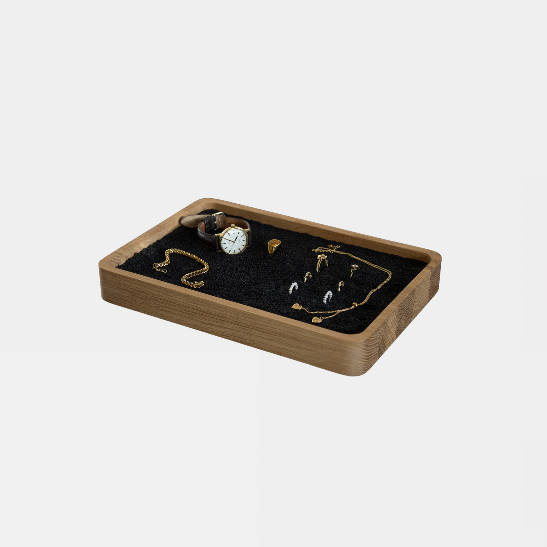 Morelund Valet—the little luxury for your everyday life. Valet Small is more than a small tray: it’s a quiet invitation to order, calm, and intention. It is made for the things you cherish—jewelry, watches, rings, glasses or small everyday objects—giving them a safe and dignified place. Instead of leaving them loose or scattered, you gather them in a calm corner where they’re treated with care and respect. It becomes easier to find what you need—and more enjoyable to put away. It becomes part of your ritual: a small daily gesture with meaningful impact. Valet Small is ideal if you want to store jewelry, rings, watches or other small items in an organized and tasteful way.